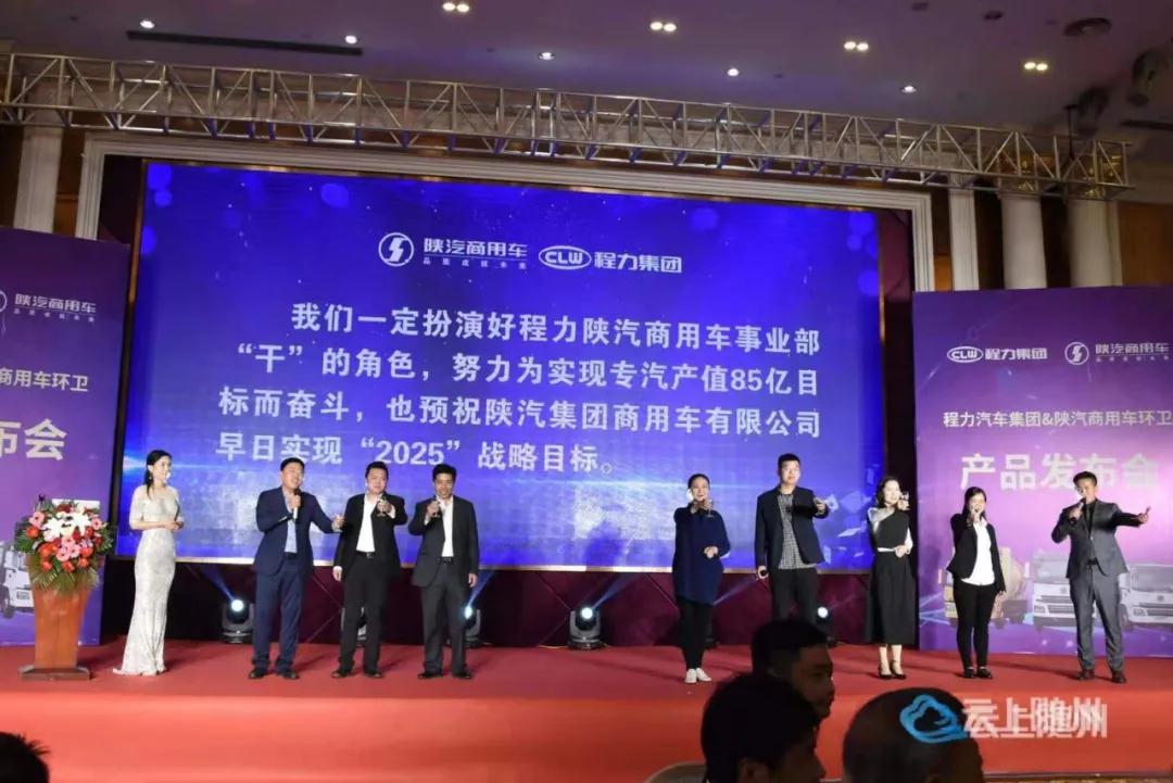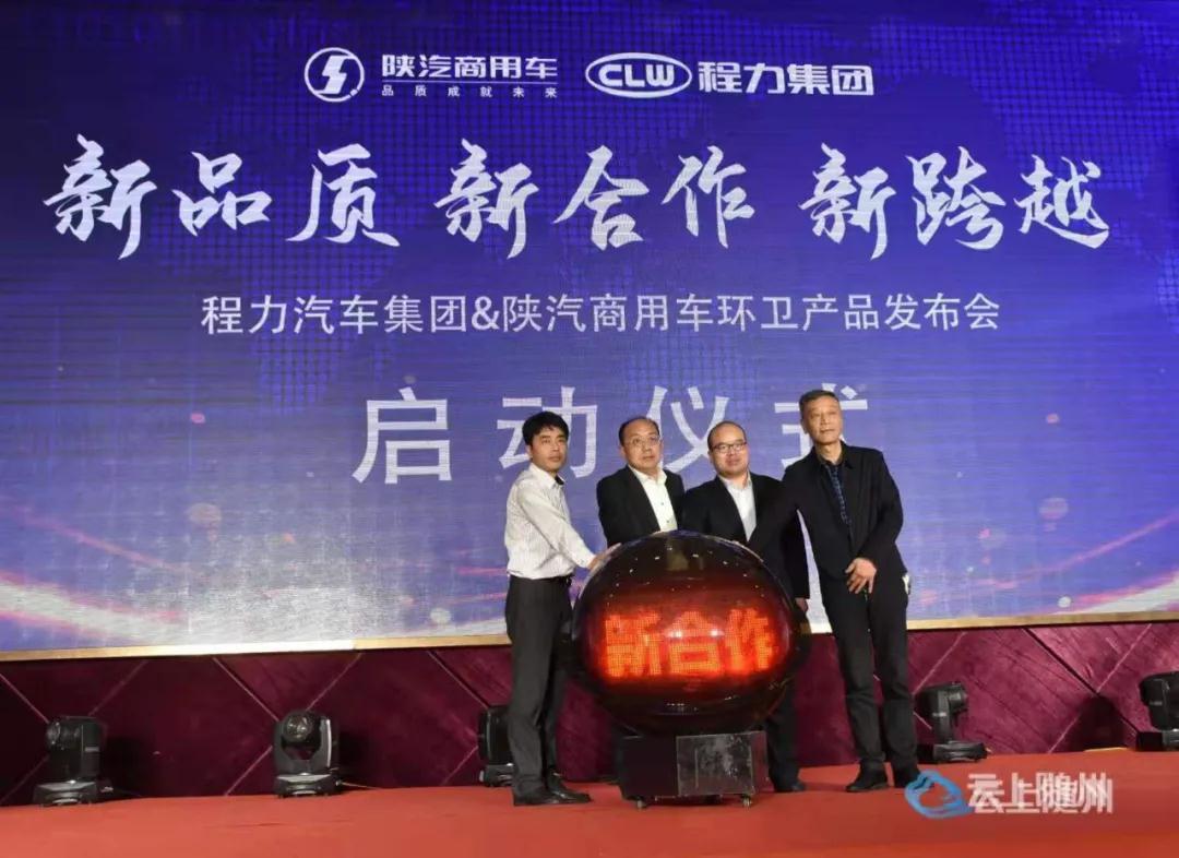 程力汽車集團(tuán)黨委副書記、集團(tuán)公司常務(wù)副總經(jīng)經(jīng)理、程力(湖北)底盤供銷公司董事長程國強,陜汽商用車銷售公司副總經(jīng)理魏宇龍,程力集團(tuán)副總經(jīng)理、底盤供銷公司總經(jīng)理劉峰,陜汽商用車銷售公司專用車部部長穆瑋周共同啟動水晶球,宣布程力集團(tuán)陜汽商用車環(huán)衛(wèi)系列產(chǎn)品正式發(fā)布。